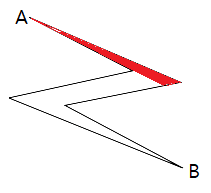 여기서 $A$에서 시작하는 영역이랑 $B$에서 시작하는 영역이랑 교차하는 부분은 없기 때문에 재미있는 점의 영역은 아예 존재하지 않는다. 그런데 $A$에서 갈수있는 영역을 먼저 잘라내면 이렇게 될 것이다.